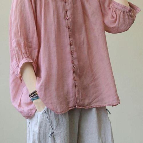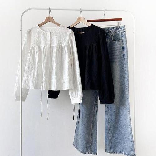 [오너클랜]인기상품 여성용 시원한 린넨 벌룬 셔링 블라우스 단추포인트 [WFLI09L_260227]