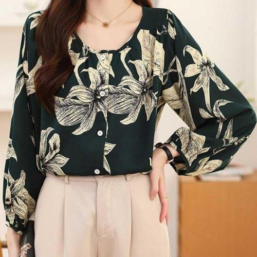 JUSTFEELING 카라 긴팔셔츠 하객룩 벌룬소매 꽃무늬 긴팔 블라우스 남방 세련된 여성의류 셔츠 상의 빅사이즈 S-3XL
