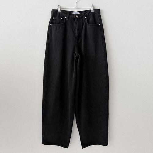 [모노폴로지]생지 스트라이프 벌룬 핀턱 와이드 밴딩 고무줄 통청바지 와이드핏 흑청바지 2color