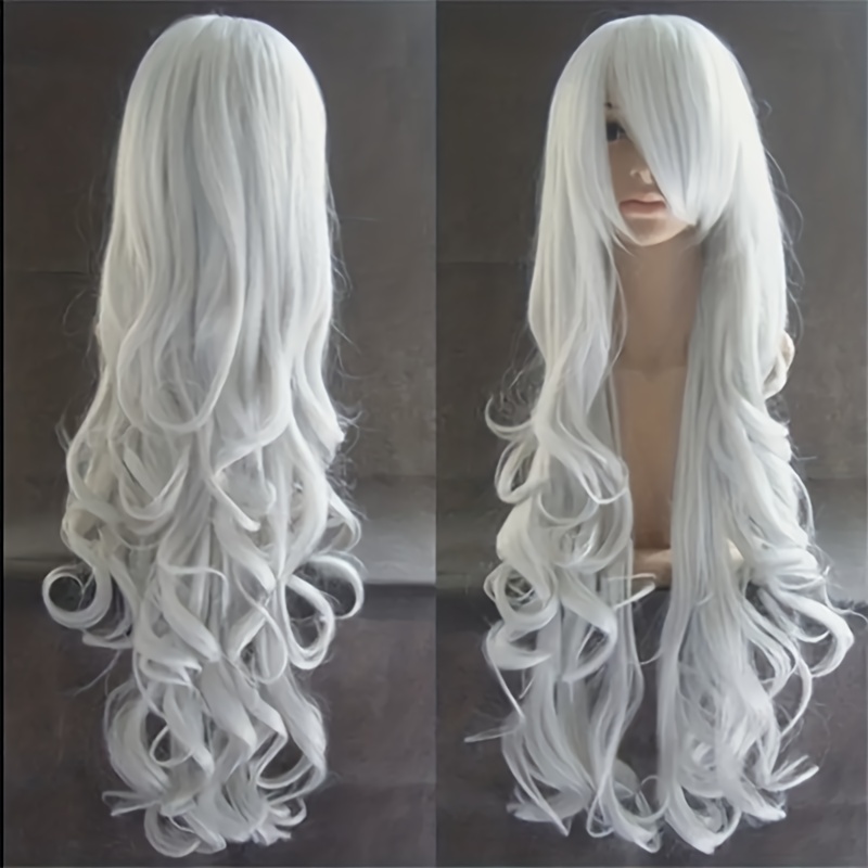 TEMU 32인치 여성용 럭셔리 화이트/퍼플 롱 컬리 헤어 솔리드 컬러 가발, 롤플레잉 드레스업 가발, 애니메이션 가발, 할로윈, 테마 파티, 일상 착용 가능, 내열성, 통기성, 풍성한 레이어드 헤어 가발, 모든 인종의 여성에게 적합