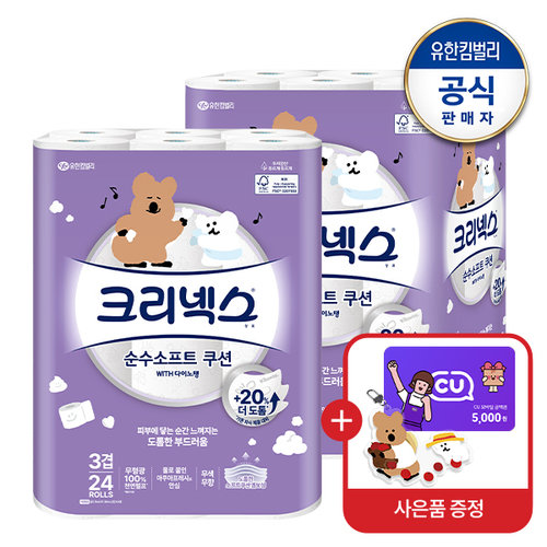 깨끗한나라 순수 프리미엄 3겹 화장지 30m 30롤 2팩 (60롤)