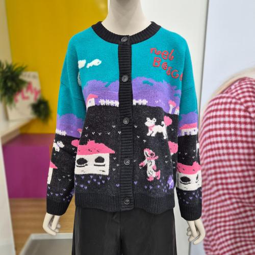 베네통/애플아울렛/들판 풍경 라운드넥 가디건/BAKCA6561