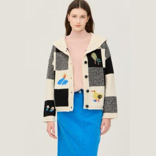 베네통/애플아울렛/모 100% 컬러 자수 배색 가디건/BAKCA3561