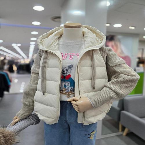 베네통/애플아울렛/니트 배색 다이아 퀼팅 후드 롱 구스 패딩/BAPDA3561