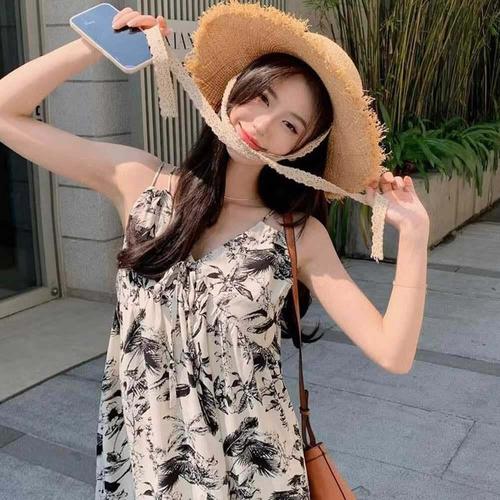 [셀럽하우스]휴가복 YFJK4686 해외여행 시원한원피스 패턴 민소매 롱원피스