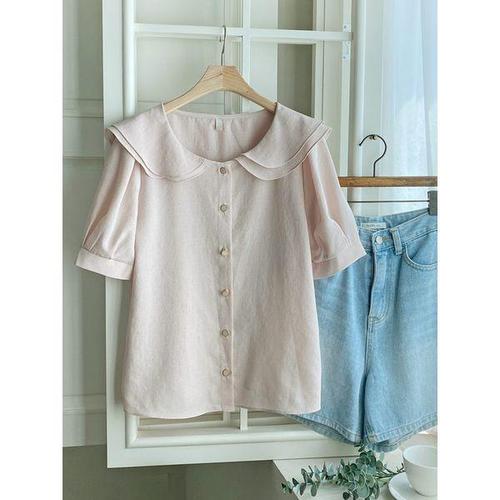 [샵앤]국산 여성 피터팬카라 퍼프 일자핏 반팔 블라우스 REI-WBL-4576-베이지
