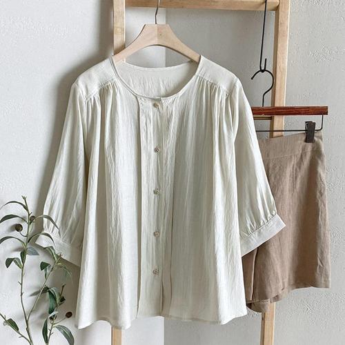 [세리아]베이지 여성 라운드 넥 7부 셔츠겸 블라우스 252461