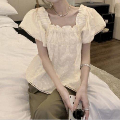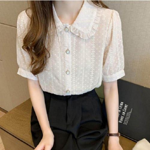 [오너클랜]인기상품 여성용 베이지 자수 프릴 반팔 여름 셔츠 블라우스 [WFLHVEK_260227]