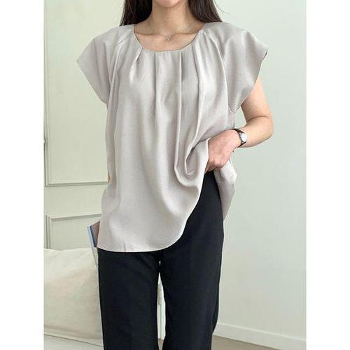 [샵앤]여성 플리츠 라운드넥 여름 캡소매 데일리 블라우스 21DS-WBL-4622-베이지
