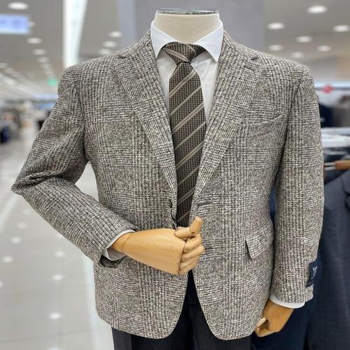 [바쏘](의정부점)24 FW 수입원사 울 100% 순모 클래시컬 글렌체크 남성콤비재킷 베이지