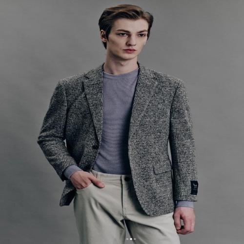 [트루젠]남성 기본핏 수입 고급 모 혼방 베이지 체크 간절기 겨울 세미 캐주얼 콤비 자켓_JK