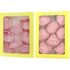 Mian Xiao Xin 비스킷 몰드 DIY 3D 입체 홈베이킹 도구 아이싱 쿠키스탬프 16종 세트 MX003, 산리오 A + 산리오 B, 1세트