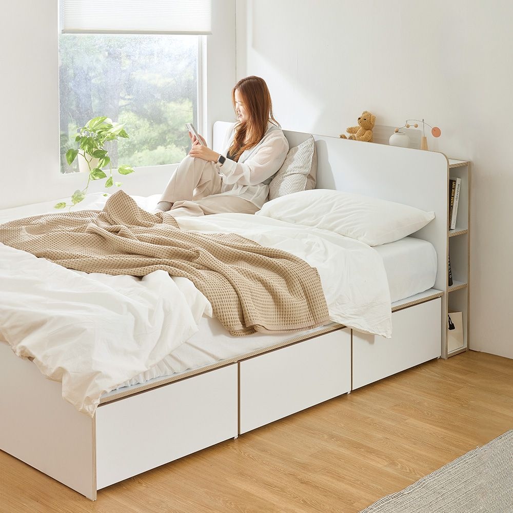 쿠폰가 199,000원 국내생산 로다 일자형 LED조명헤드 통수납침대 SS/Q (콘센트)