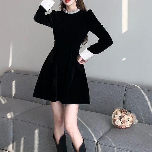 COMIRST 겨울 여성 패션 캐주얼 벨벳 원피스 FC5644