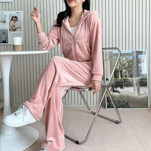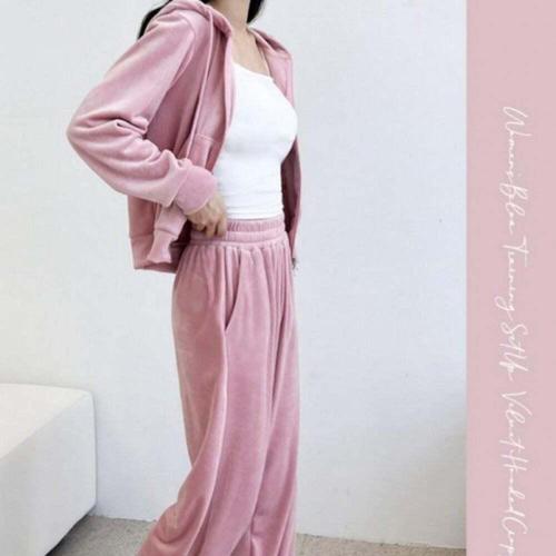 [셀럽하우스]데일리 BSTY2921 여자 벨벳 후드집업 와이드 트레이닝 세트