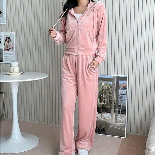 가을겨울 벨벳 트레이닝세트 여성 기모 후드집업+스포츠 조거팬츠 투피스 도톰한 캐주얼 트레이닝 상하세트