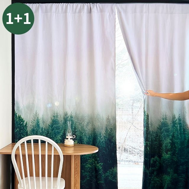 [1+1] 99%자외선빛차단 자연풍경 작은창/긴창 암막커튼 붙이는 창문형커튼 4종3size