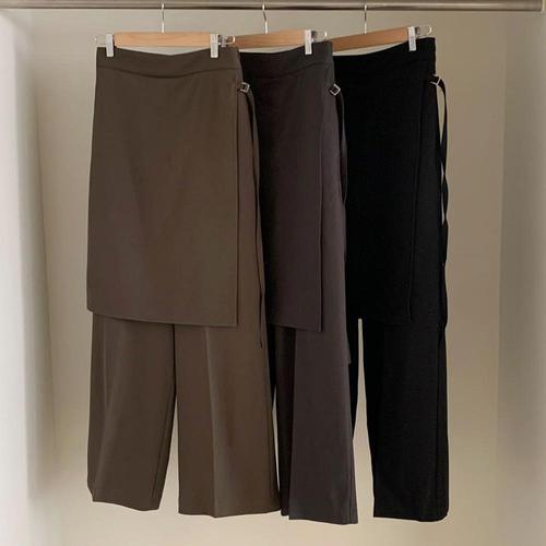 [옷자락] 여자 레이어드 벨트 미디 랩스커트 가을 와이드 슬랙스