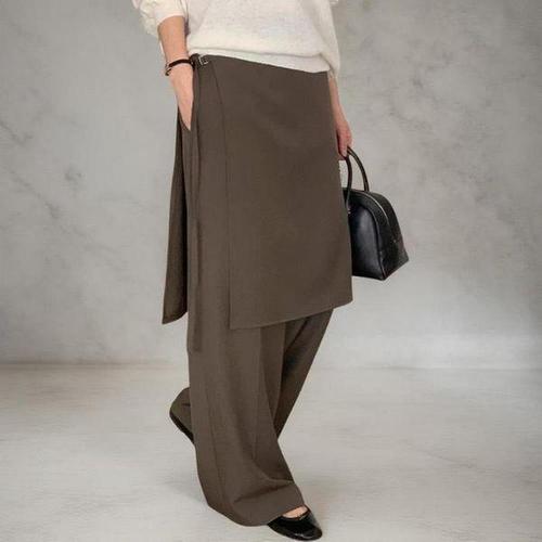 [옷자락]여성 레이어드 벨트 미디 랩스커트 가을 와이드슬랙스