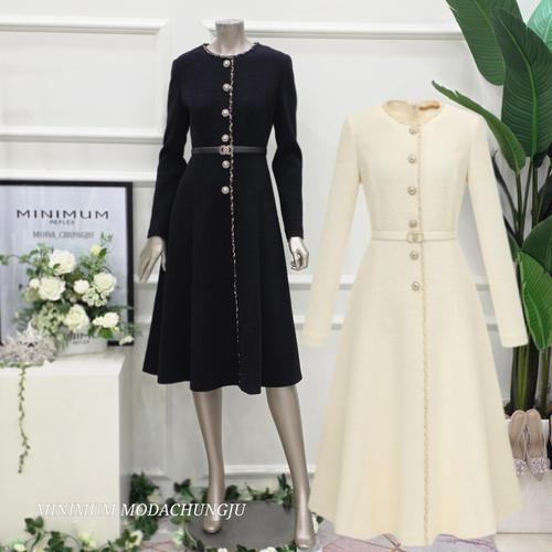 [미니멈]MD 트위드 버튼 벨트 원피스 MD MYDAWO1200BK