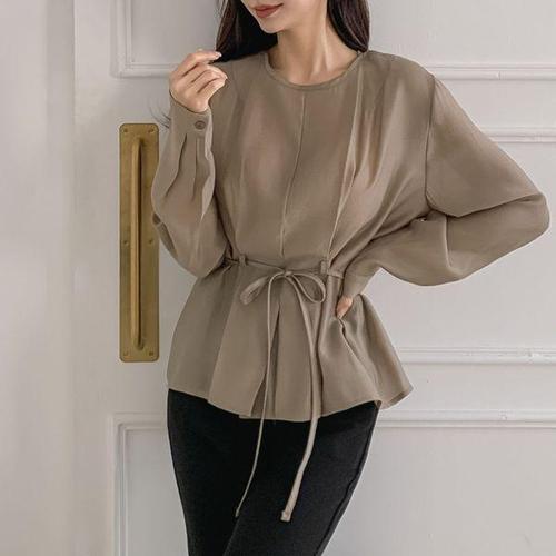 [셀러허브_여성트랜드패션]여자 들러리룩 큰사이즈 리본벨티드 블라우스