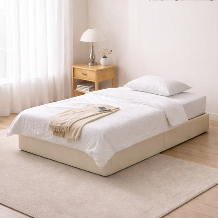 보루네오 [보루네오]호텔라인 파운데이션 가죽 침대 싱글 (포켓매트/충전포트/무헤드) KC864
