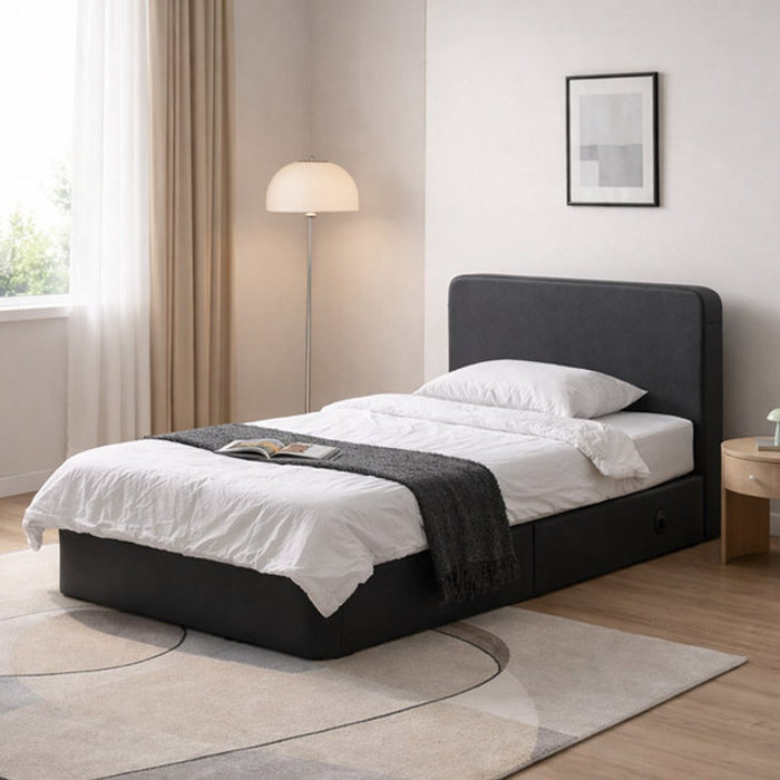 [보루네오]호텔라인 파운데이션 패브릭 침대 싱글 (호텔매트/충전포트/무헤드) KC895