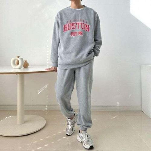 [셀럽하우스]남자 KXAZ4385 보스턴 캐주얼 기모 맨투맨 조거 세트