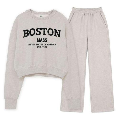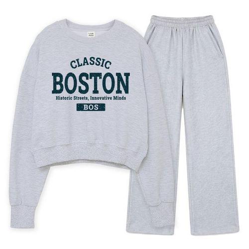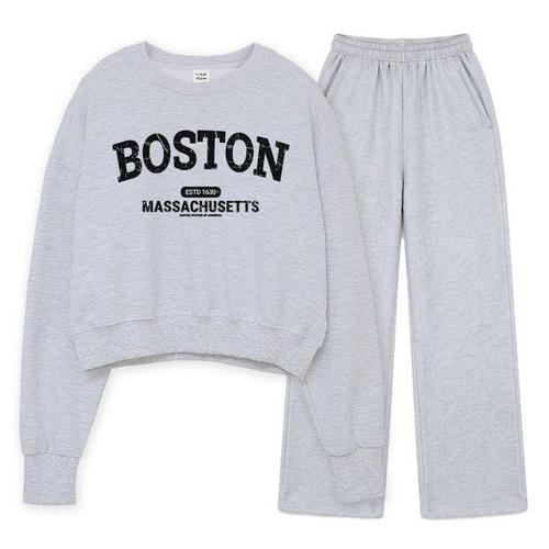 [에어플레인]보스턴 매사추세츠 크롭 맨투맨 와이드 팬츠 세트(4color)