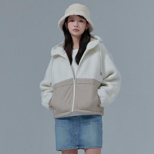여성 우븐 배색 보아 후드집업-CFRG4375D0P