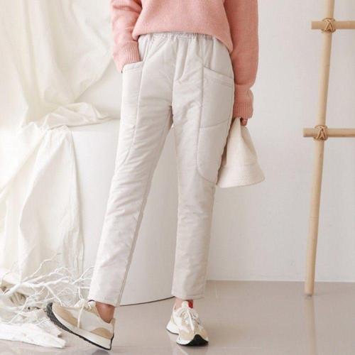 팬츠 면 여성용 겨울 캐주얼 빈티지 트렌디 빅사이즈 면린넨 아이템 퀼팅 보온 HT4