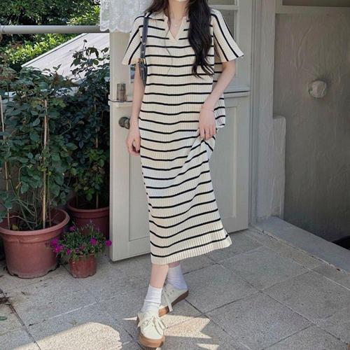 [오너클랜]인기상품 날씬해보이는 여름 스트라이프 원피스 롱원피스 니트 [WFLNIWR_260129]