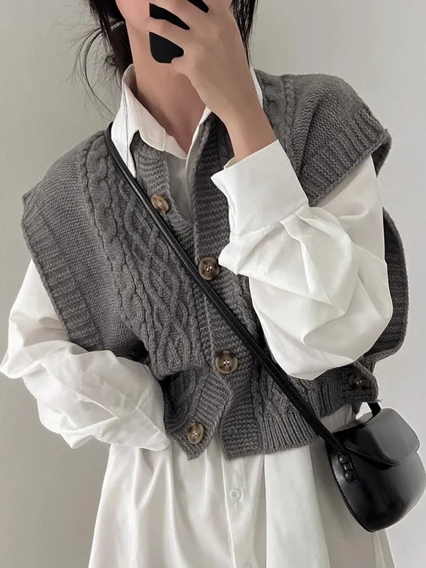 가을 민소매 여성 루즈핏 캐주얼 베스트 패션 솔리드 컬러 우아한 V넥 니트 탑 한국 스타일 풀오버 니트웨어