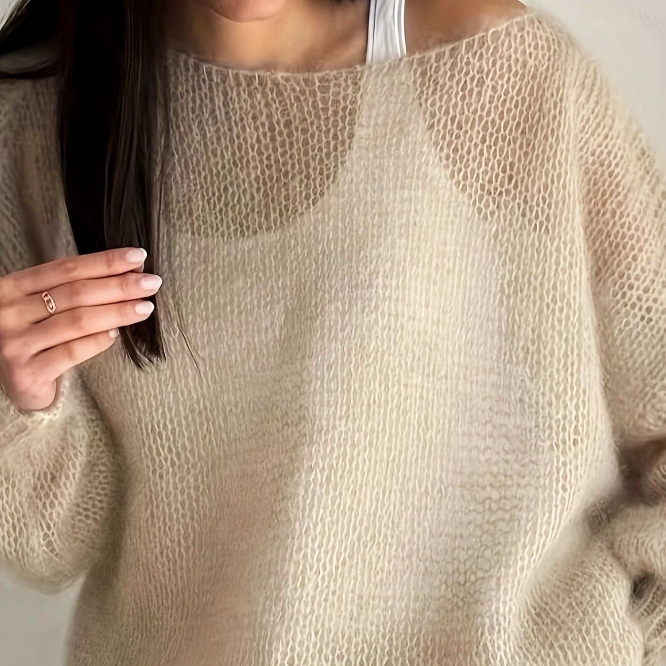 TEMU 할로우 아웃 디자인 봄 여름 가을 여성용 스웨터 메쉬 시스루 루즈핏 얇은 캐주얼 라운드넥 오프숄더 풀오버