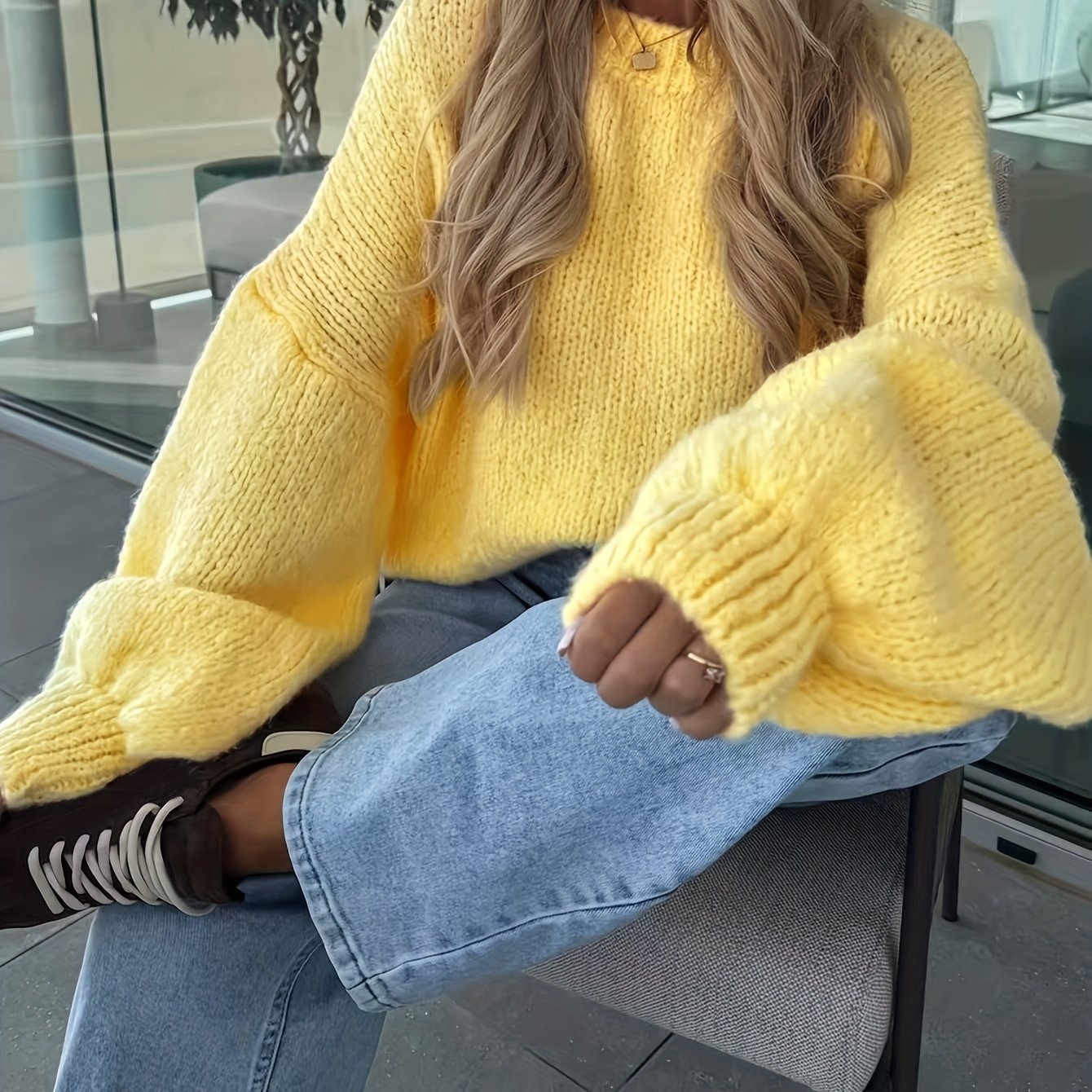 TEMU Women's High-Elasticity Oversized Sweater - Soft Ro Ne Long Sleeve Pullover with Ribbed Trim, Loose Fit Winter Sweater Suitable for Autumn/Casual Wear, Cozy Warmth for Layering (Hand Washable)