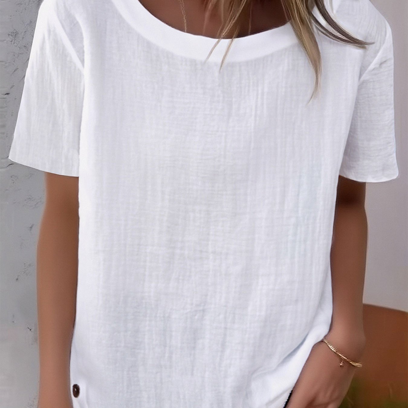 TEMU 솔리드 컬러 SZ 봄/여름 캐주얼 루즈핏 여성용 라운드넥 반팔 탑
