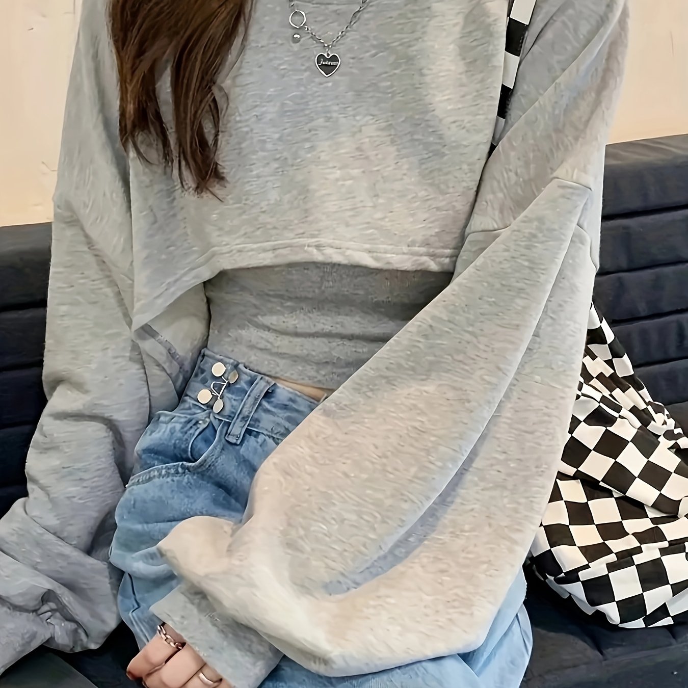 TEMU 여성용 일본식 한일 스타일 캐주얼 긴소매 봄/가을 크롭 스웨트셔츠 - 라운드 넥 루즈핏 상의, 일상 외출 및 댄스웨어용, 패셔너블한 풀오버, 트렌드 애호가를 위한 필수템