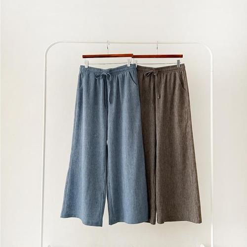 라운지21 남자 밴딩 린넨 9부 스판 카고 와이드팬츠