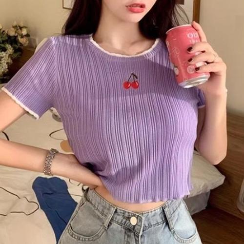[셀러허브_여성트랜드패션]ONM 여성 보라색 크롭티셔츠 여름 하이틴룩 복고