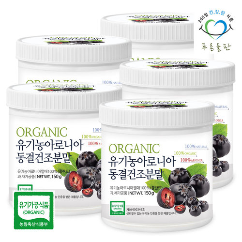 [푸른들판] 유기농 아로니아 동결건조 분말 100% 150gx5통 블랙초크베리 열매 가루 파우더