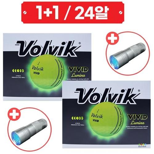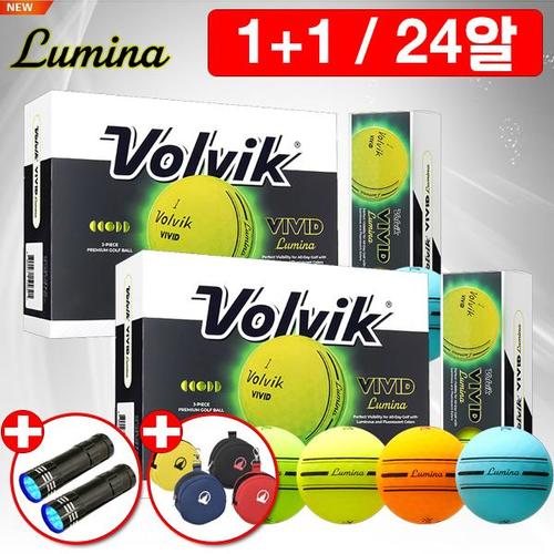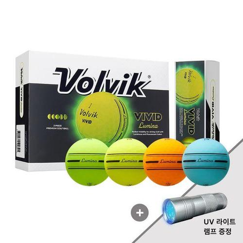 볼빅 비비드 루미나 듀얼코어 3피스 12구 야광 골프공 + UV 라이트 램프