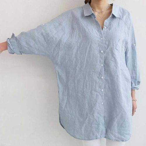 [주식회사 브이와이][JHQRJFTJ_4B]여성 와이셔츠 오버핏 봄가을 하늘하늘 셔츠 (24021780A)