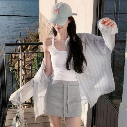 여자 면 캐주얼 스트라이프 봄가을 셔츠 예쁜 카디건 상의 원픽3