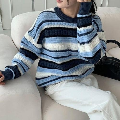 [엄지척]여자 배색 루즈핏 스타일 단가라 니트 추천 봄가을 데_19805271_667501