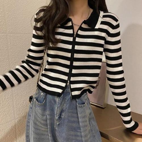 [엄지척]간절기니트 봄 스트라이프 카라 집업 외출 니트티_19806235_667501
