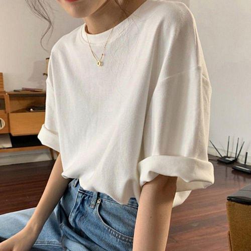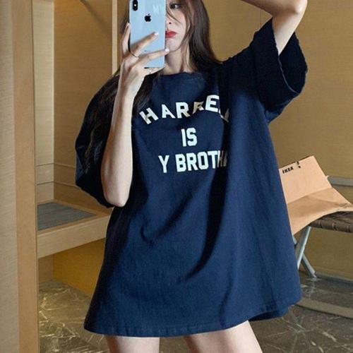 [오너클랜]인기상품 오버핏 여성 라운드 반팔 롱티 뒷면 레터링 티셔츠 봄 여자 티 [WFLLBAW_260304]