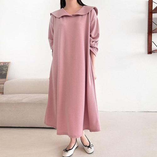 [문에이블]문에이블 여자 여성 봄 가을 루즈핏 체형커버 데일리 둥근카라 세일러 긴팔 롱 원피스