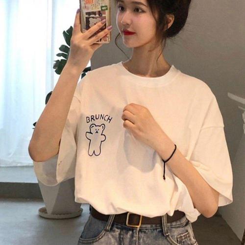 [오너클랜]인기상품 곰돌이 그림 여성용 라운드 반팔 롱티 봄 옷 [WFLL7IB_260304]