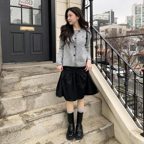 [다잇템][다잇템] 여성 고무줄 클래식 길이 중간 후레아 봄가을 치마_24416585_588872
