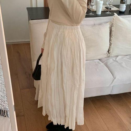 [신상오픈런]여성 구김 방지 플레어 롱스커트 코튼 밴딩 봄 여리핏